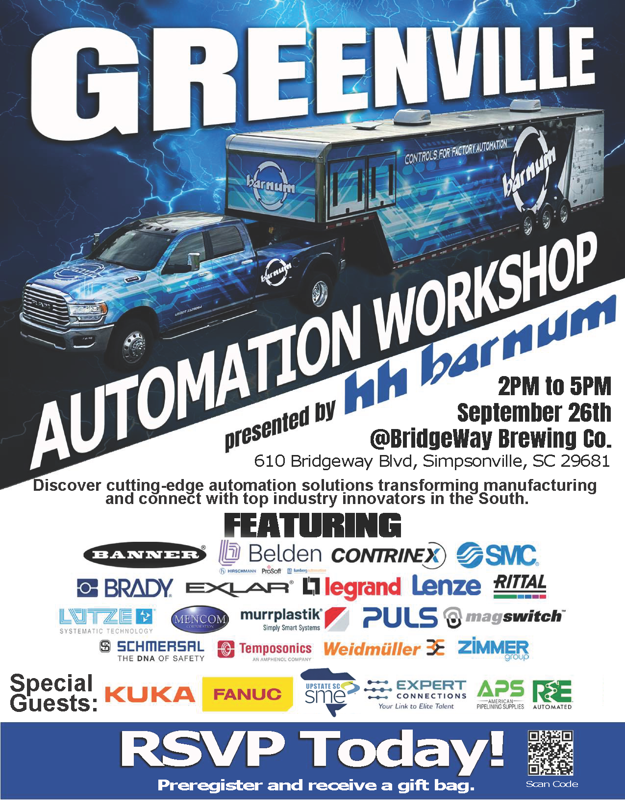 Join H.H. Barnum for an exciting afternoon at the Greenville Automation Workshop on Friday, September 26, 2025, from 2:00 PM – 5:00 PM at BridgeWay Brewing Co.!