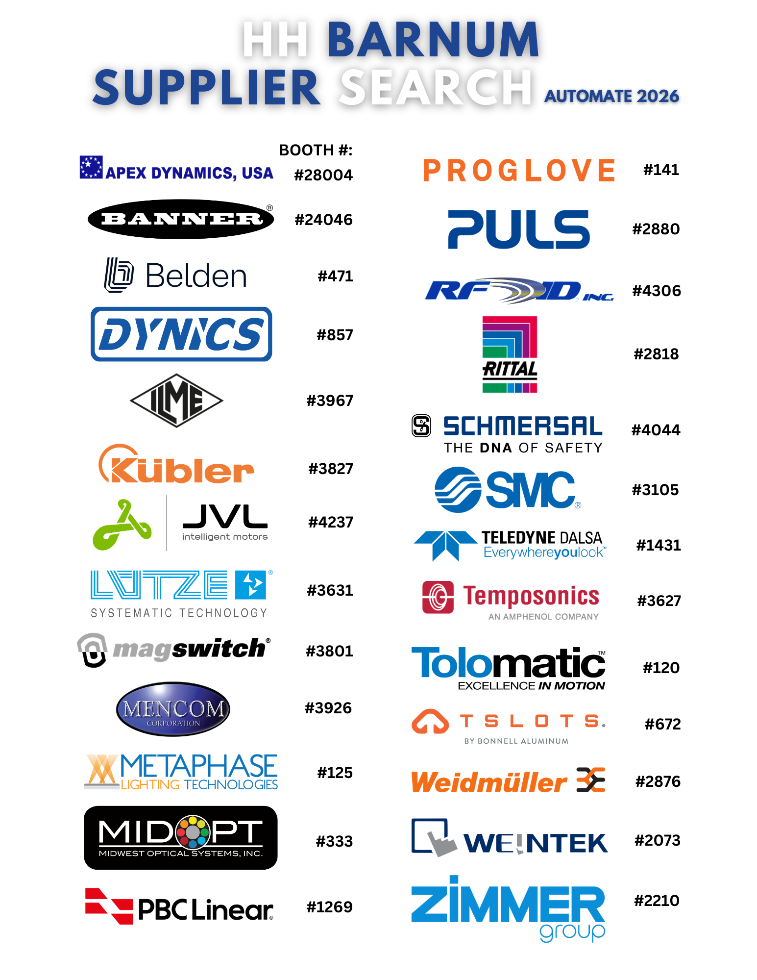 • Visit the booths of H.H. Barnum suppliers exhibiting at Automate and earn prizes! Each H.H. Barnum supplier will have a QR code at their booth for you to scan. Scan the QR code to complete the challenge, complete all challenges for a chance to win BIG!